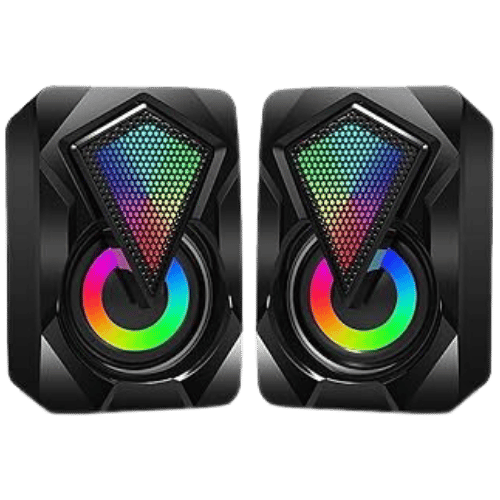 شريط صوت استريو للكمبيوتر المكتبي 2.0 قناة مع حجم صغير يمكن المناورة به، ومقبس سماعة رأس، وصوت جهير عالي الجودة وإضاءة خلفية حمراء لائقة، وقلب استريو 2.0 قناة - مزود بوحدة محرك صوت متقدمة مع مجموعة كاملة من قلب استريو 2.0 قناة ¦. لذا، ارفعه وارتفع